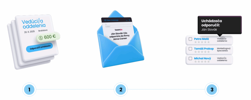 Zapojenie kolegov do náborového procesu prinesie kvalitnejších kandidátov a rýchlejšie obsadenie pozícií. Celý proces odporúčania môžete teraz manažovať priamo v Teamiu a neujde vám žiadny kandidát ani odmena.